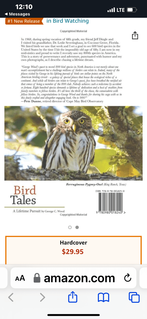 During the Stonechat walk, I met an intense Coloradian named Nick who had completed a “Big Year” in 2023. He recorded 796 species in the ABA Area that year! Amazingly (to me), he had read my book!! When I thanked him for the $4 I receive from every Amazon sale, he deadpanned: “I bought it used”.