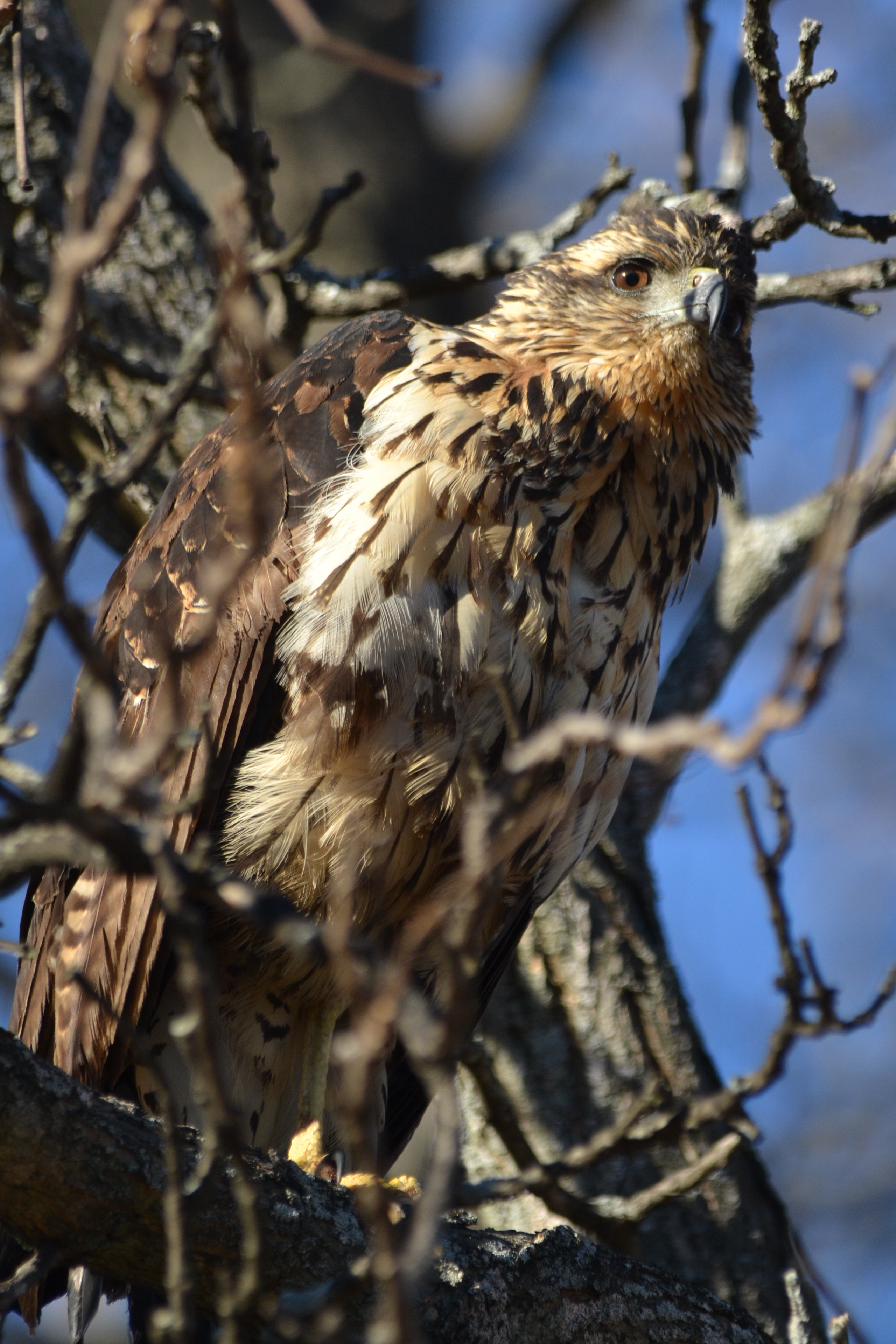 OF COURSE, I had to try again to see and photograph the first-ever-documented-in-USA, South American resident, GREAT BLACK HAWK, currently in Portland, Maine. Two weeks ago I was skunked. Today was different. With the aid of my wife’s frequent flier miles, I was back at Deering Oaks Park this morning, accompanied by at least 30 avid birders from around the country. The pictures tell it all. YOU, please indicate your favorite and help me decide which one will be enlarged, printed and framed. Thank you and HAPPY HOLIDAYS!